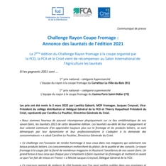 Les prix ont été remis le 3 mars 2022 par Laetitia Gaborit, MOF fromager, Jacques Creyssel, Vice-Président du collège distribution et Délégué Général de la FCD et Thierry Roquefeuil Président du Cniel, représenté par Caroline Le Poultier, Directrice Générale du Cniel.