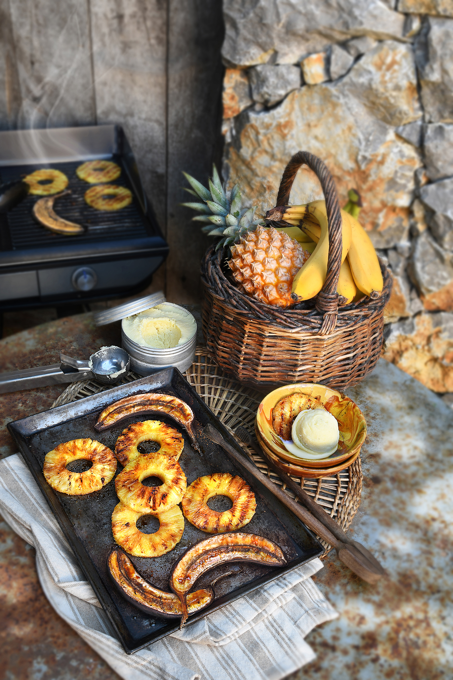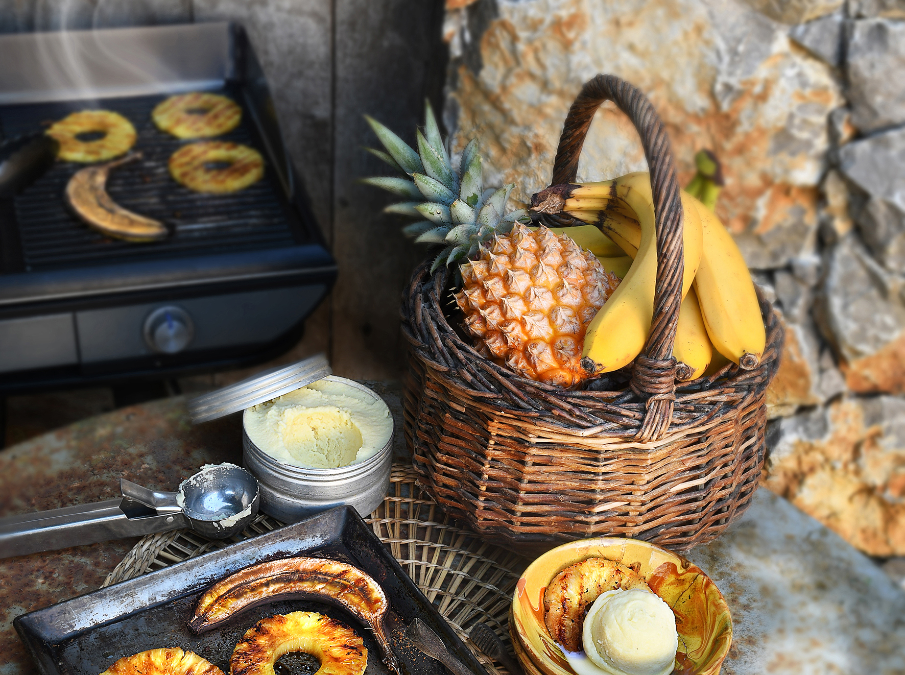 Ananas & bananes grillés, glace coco maison