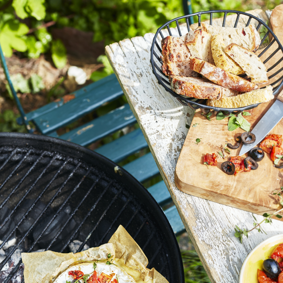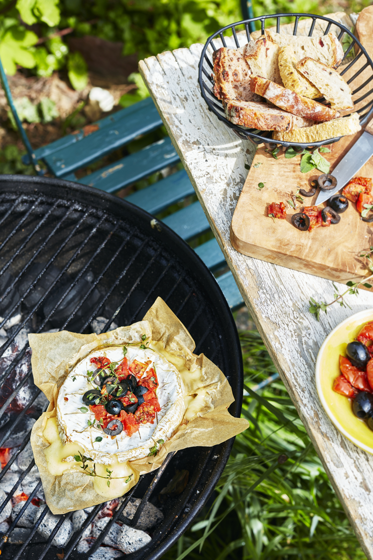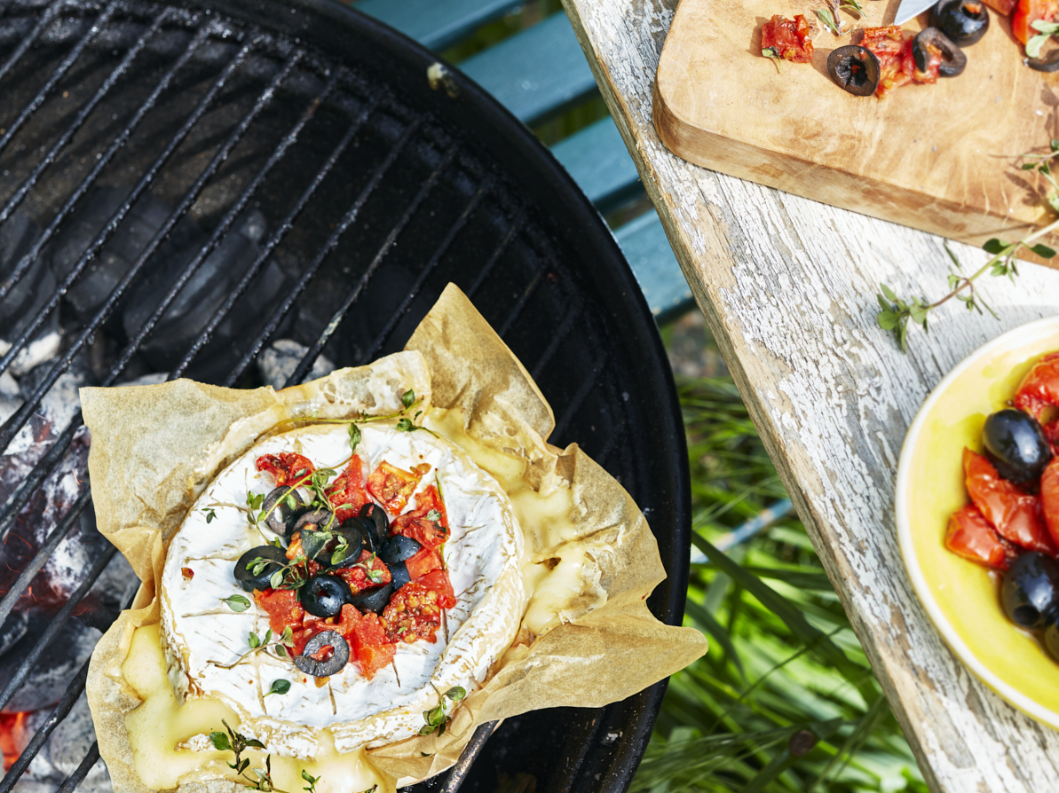 CAMEMBERT SUR LA BRAISE TOMATES CONFITES ET OLIVES