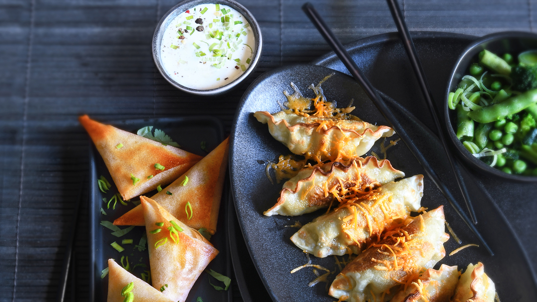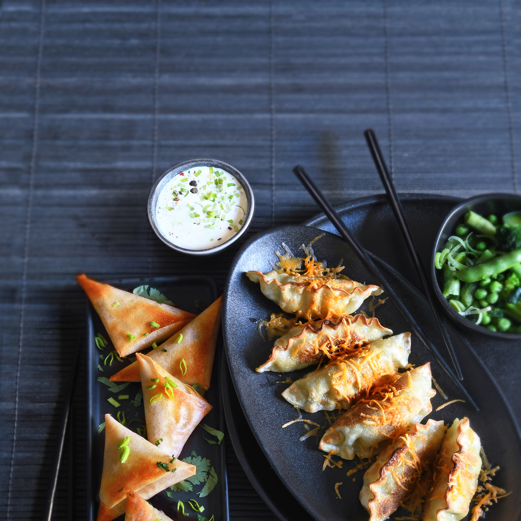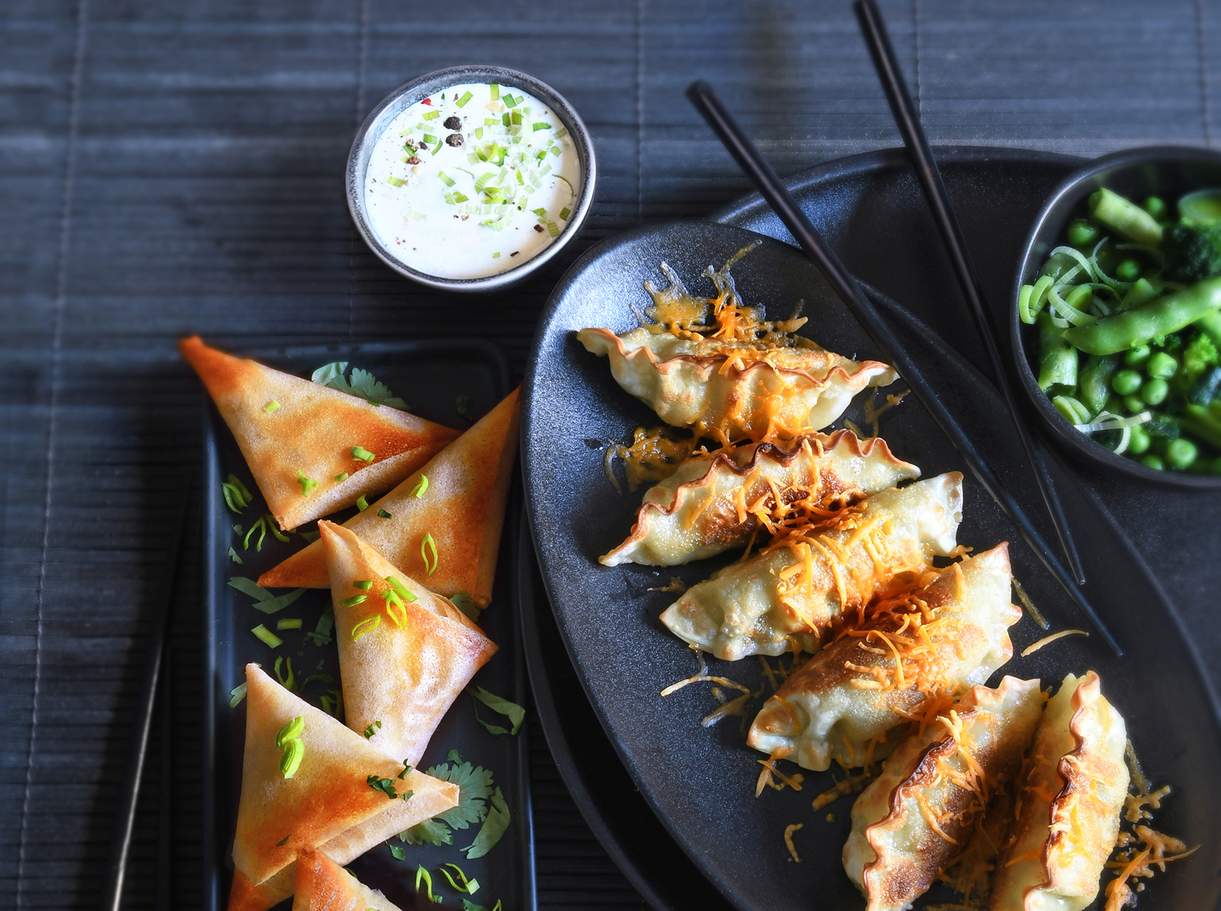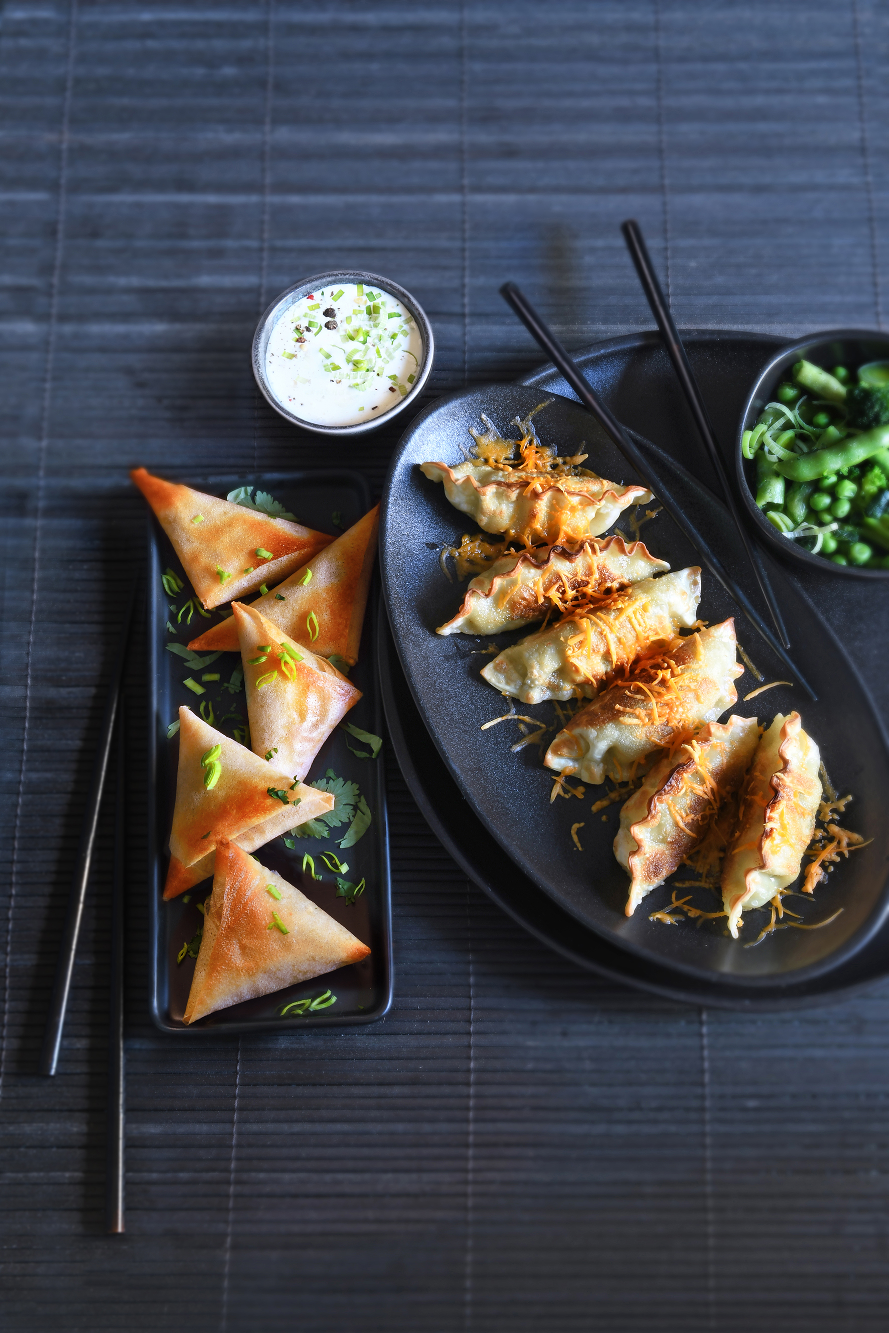 Gyozas au poulet et mimolette - Samoussas au fromage frais et légumes