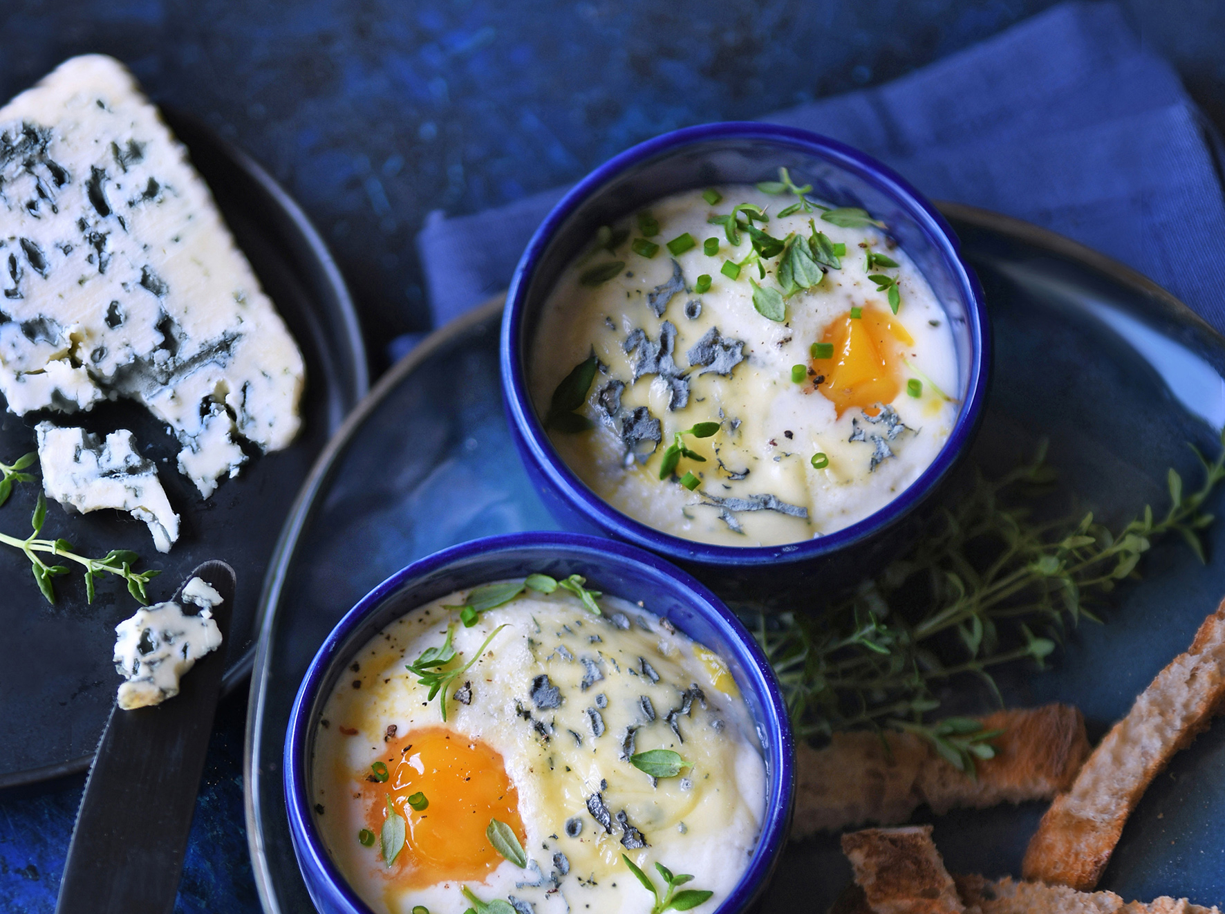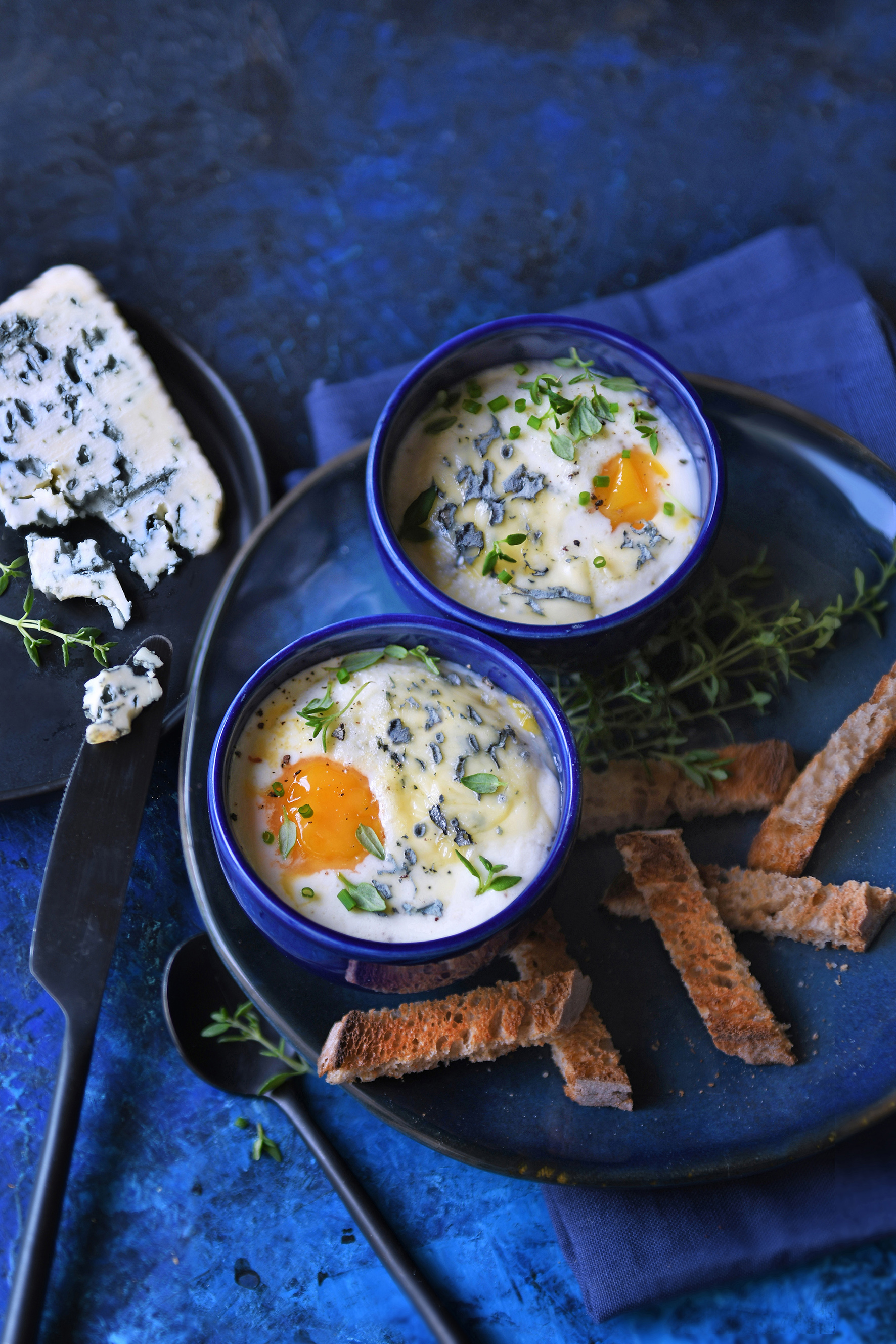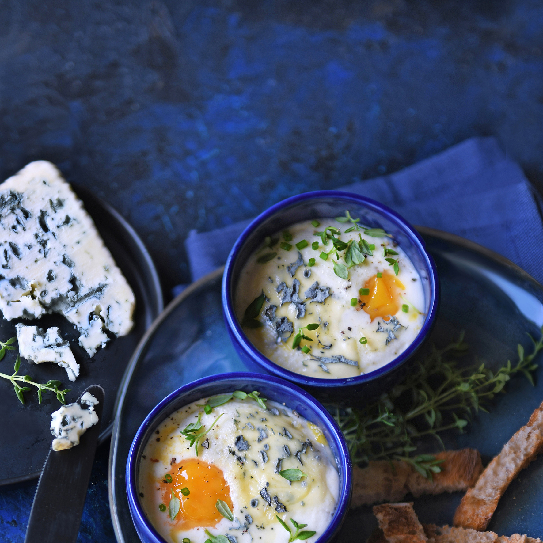 Œufs cocotte au bleu des Causses