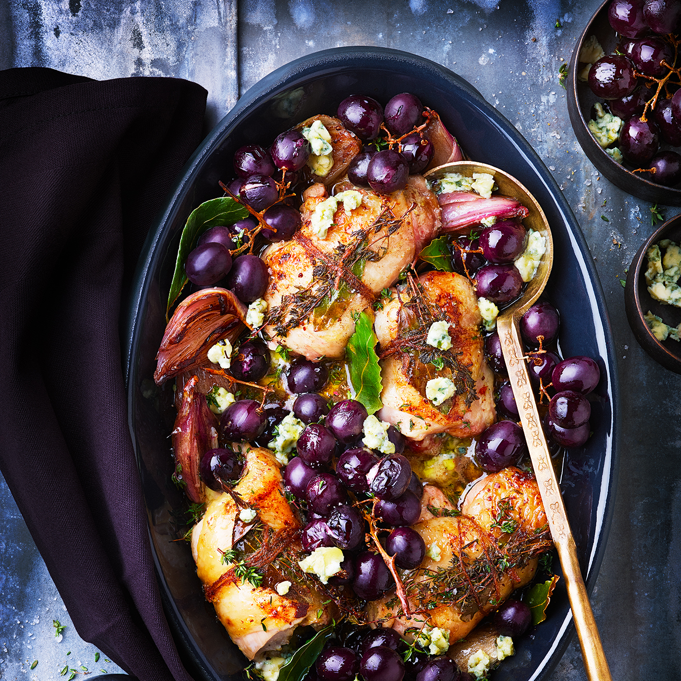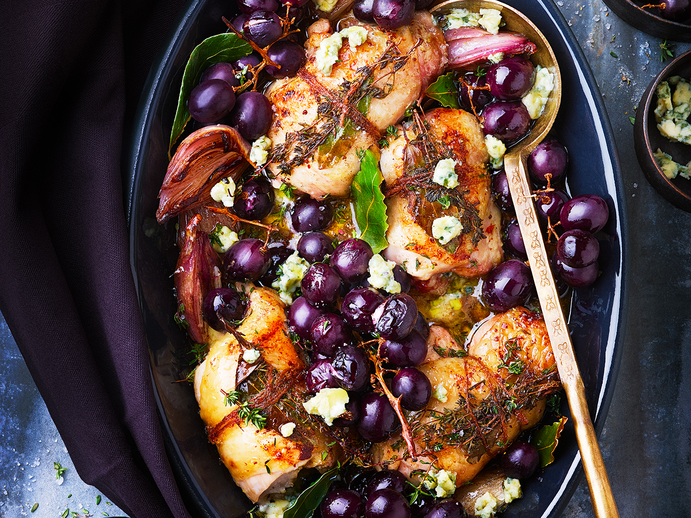 PAUPIETTES DE POULET AU BLEU D’AUVERGNE ET RAISINS ROUGES
