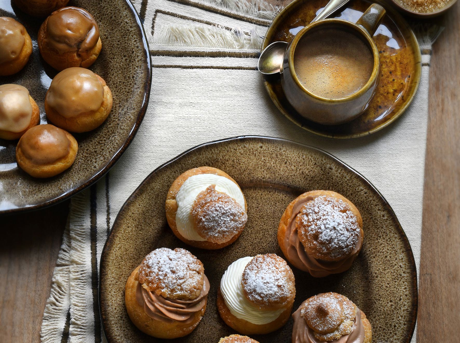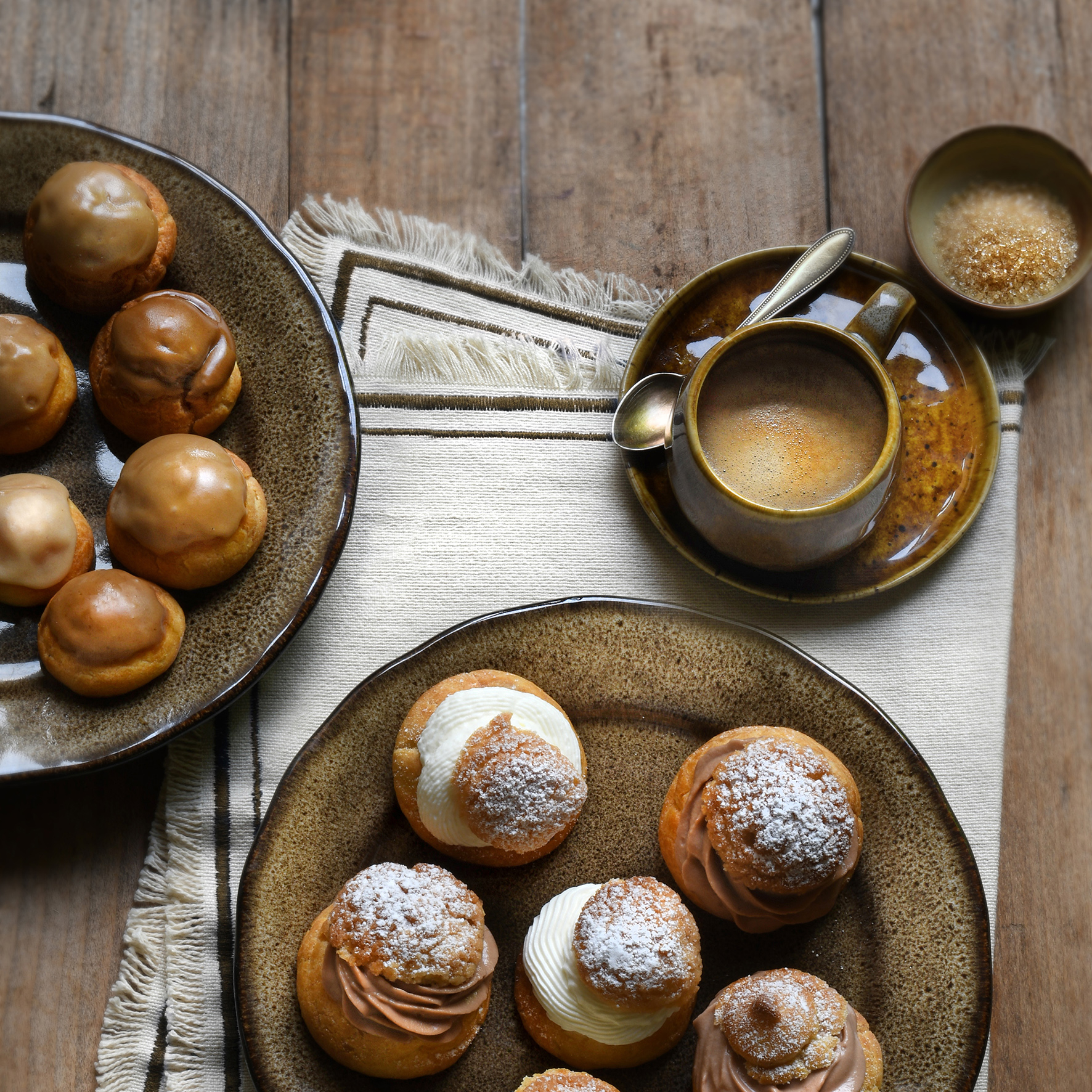 Petits choux à la chantilly vanillée - praliné et Choux à la crème pâtissière et glaçage royal