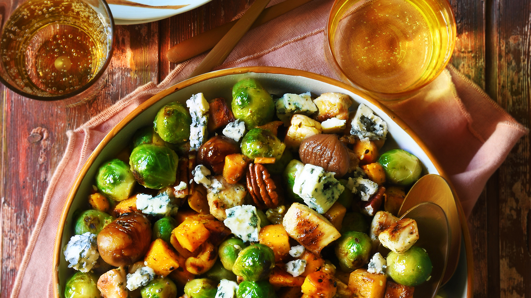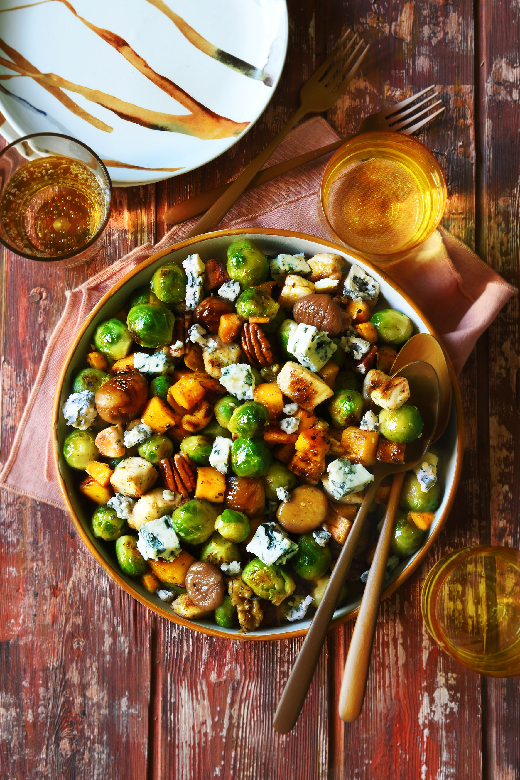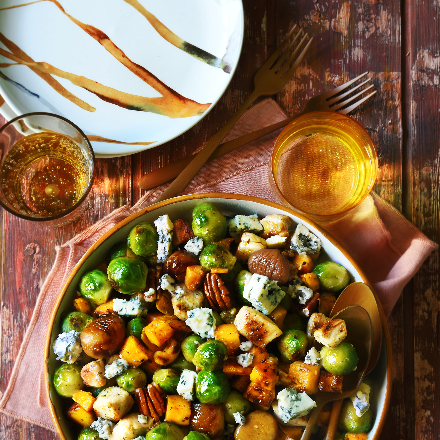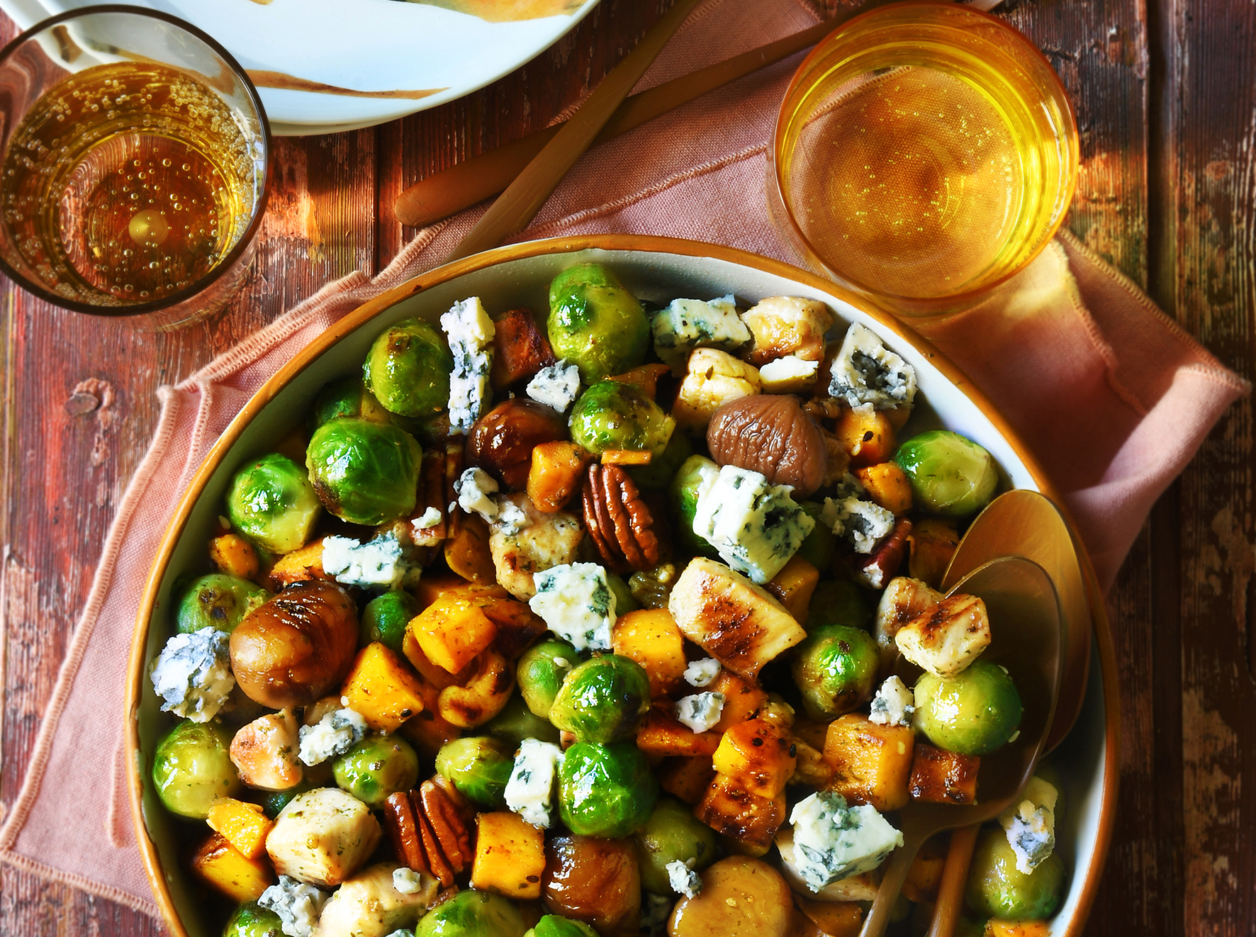 Poêlée d’automne aux châtaignes, choux de Bruxelles, poulet et Bleu du Vercors