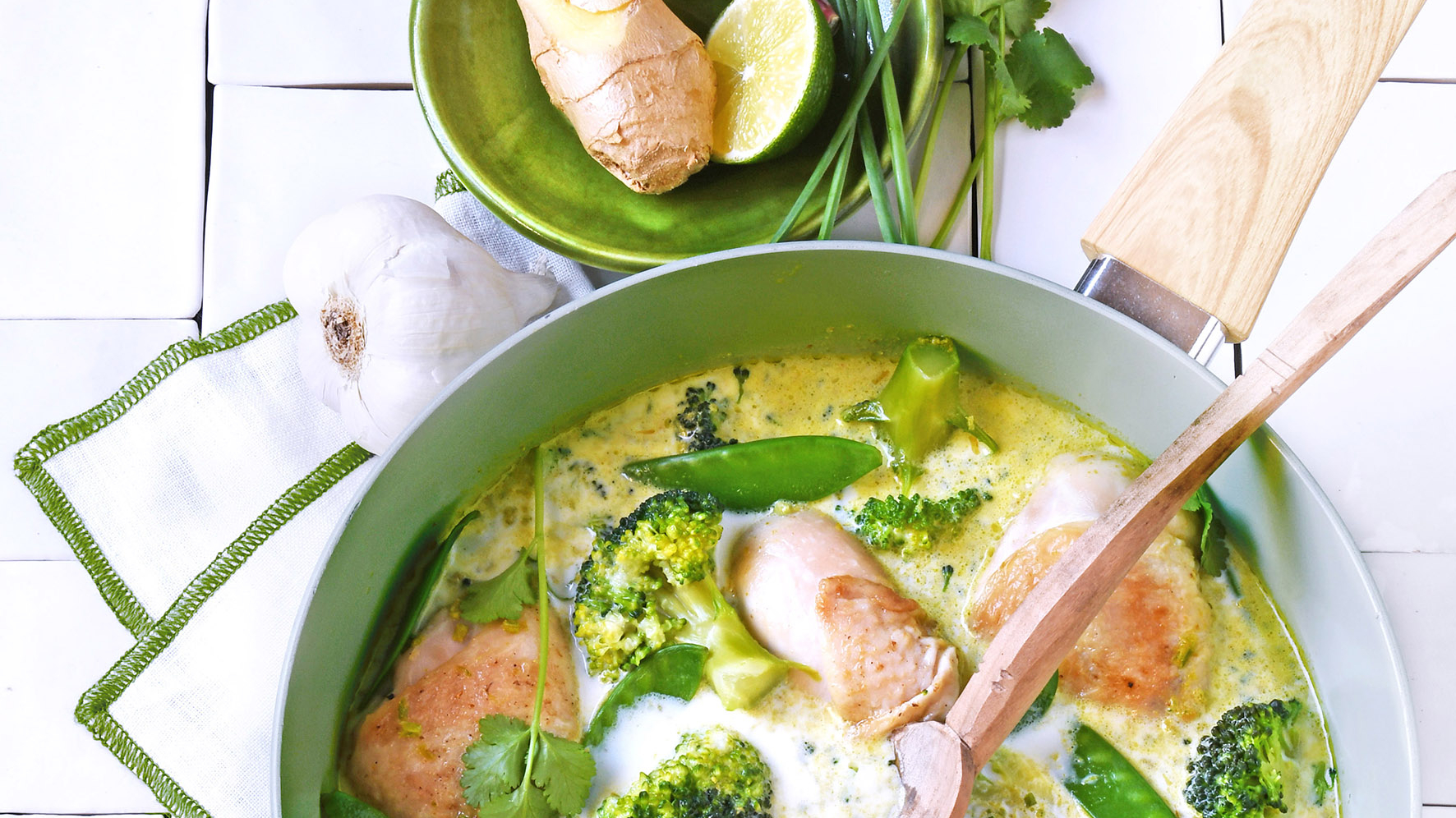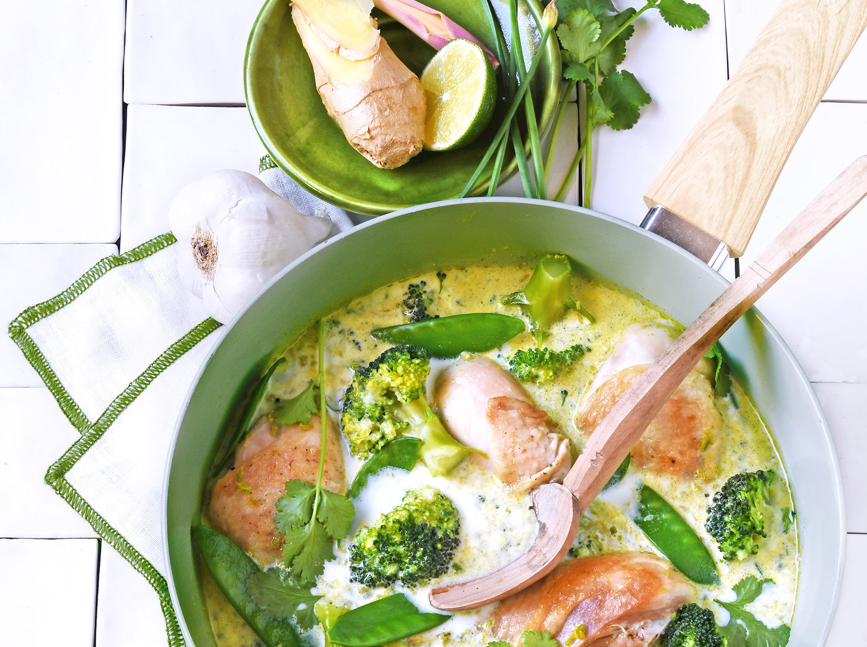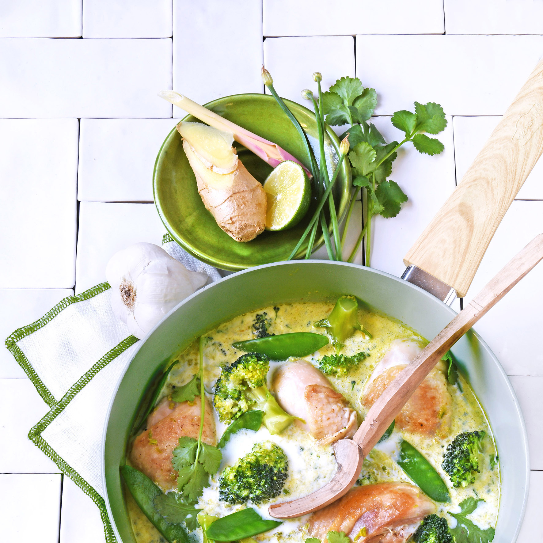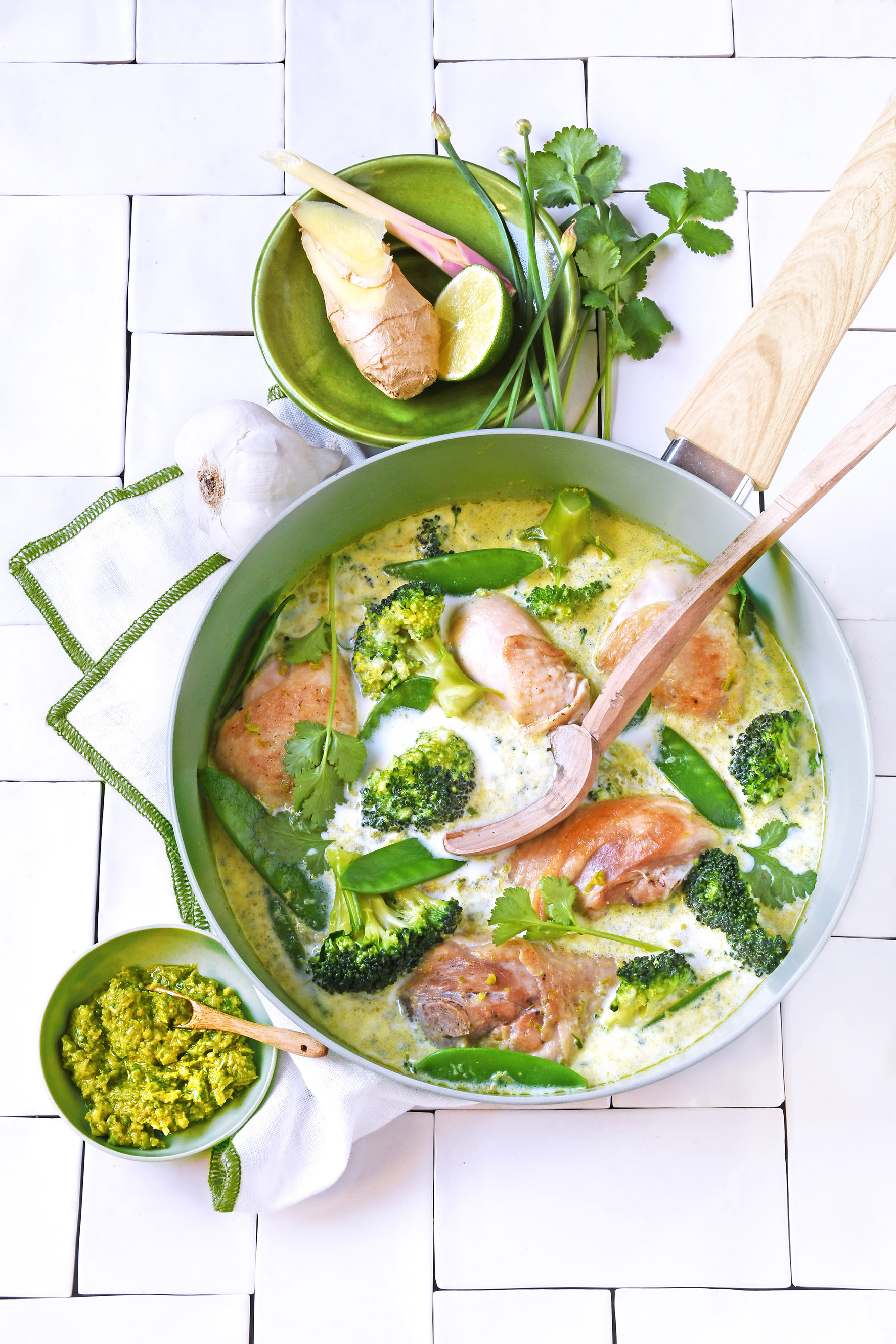 Poulet au lait parfumé et curry vert