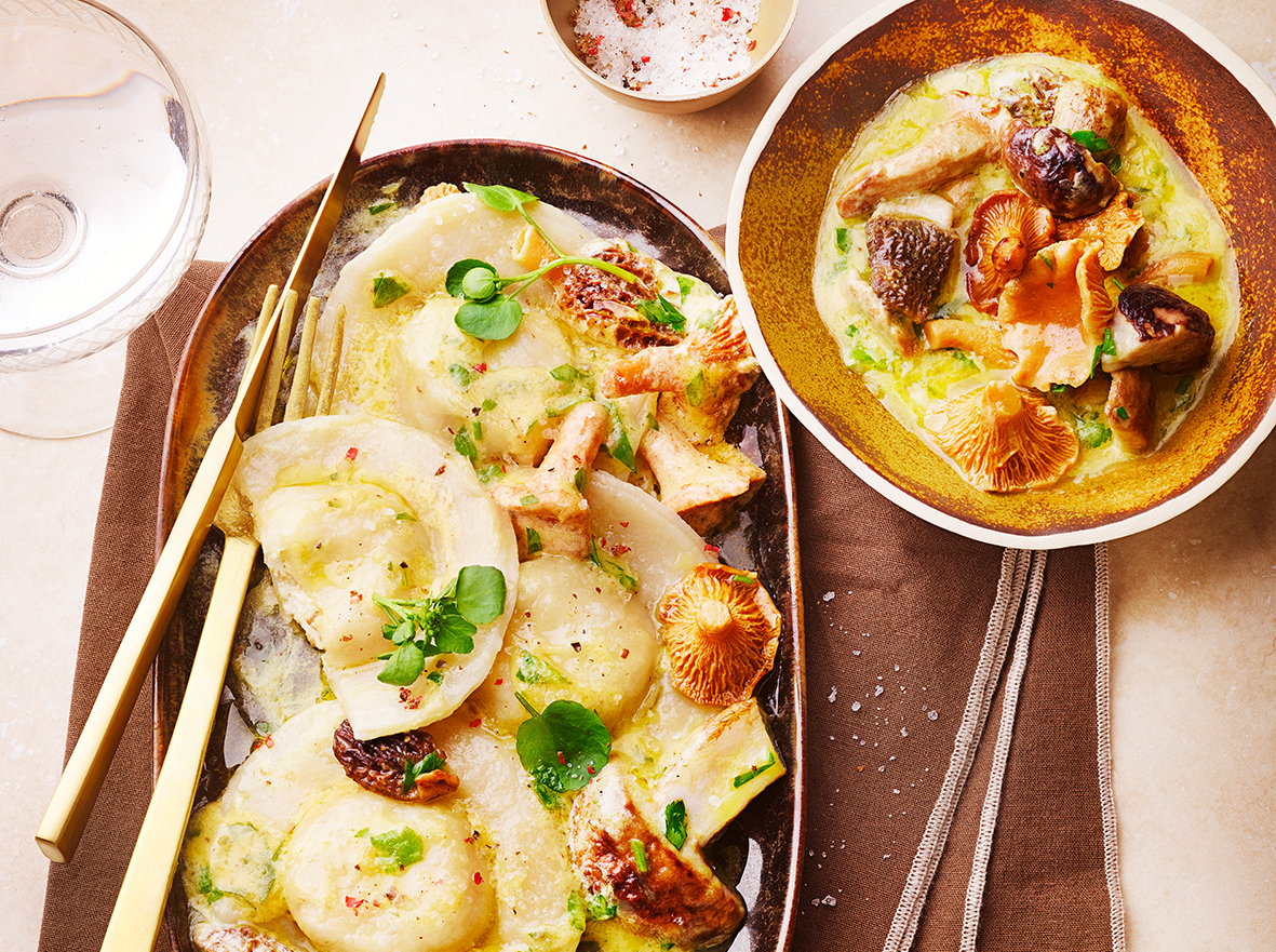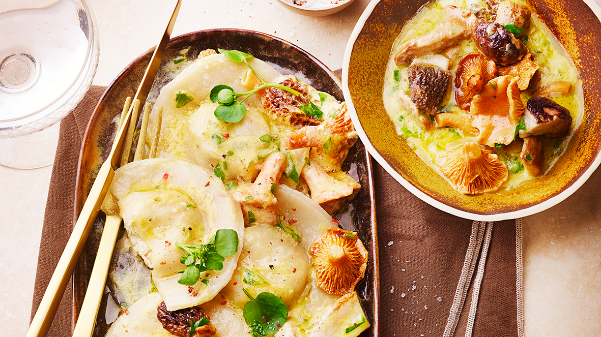 Ravioles de Brocciu et crème de champignons sauvages