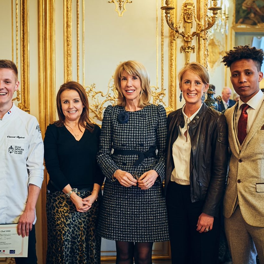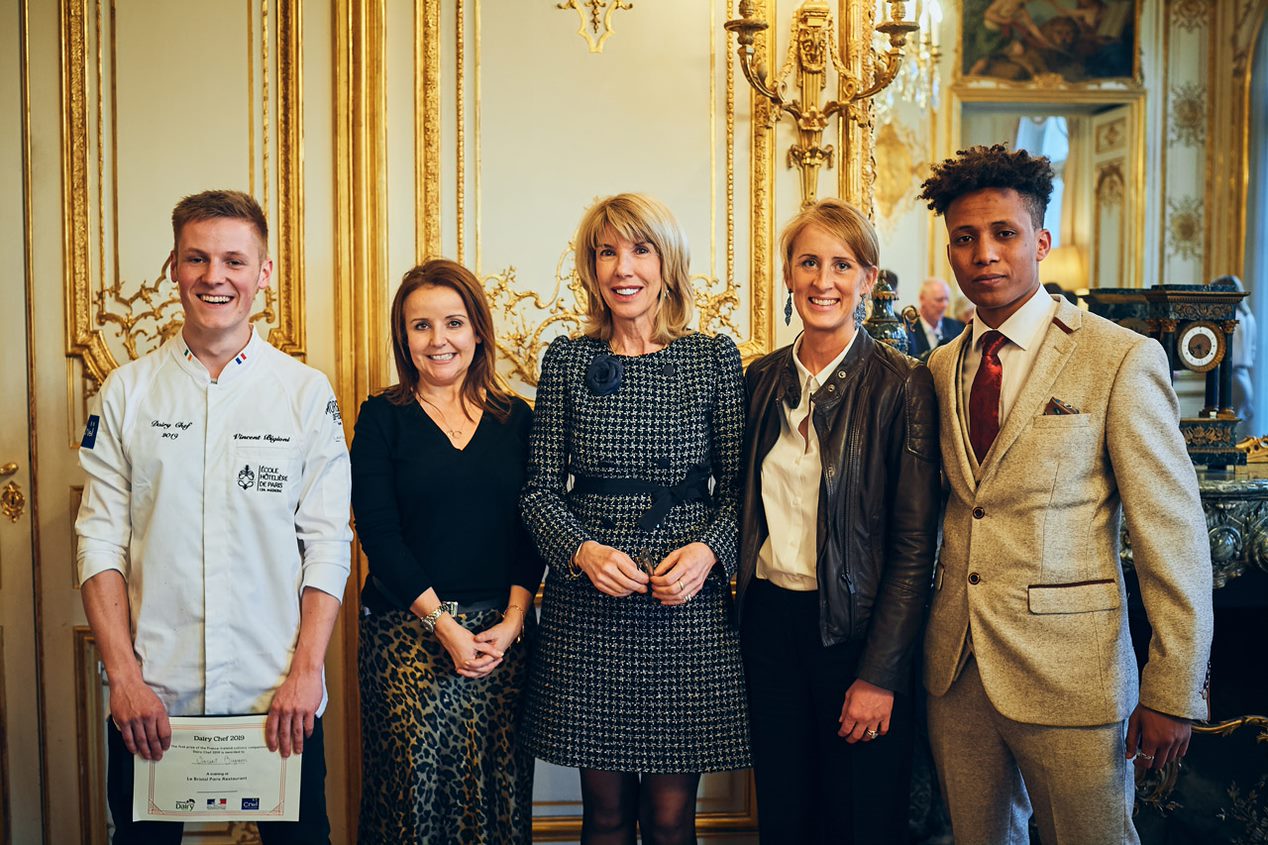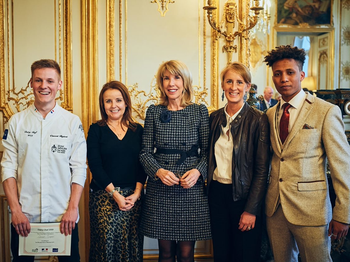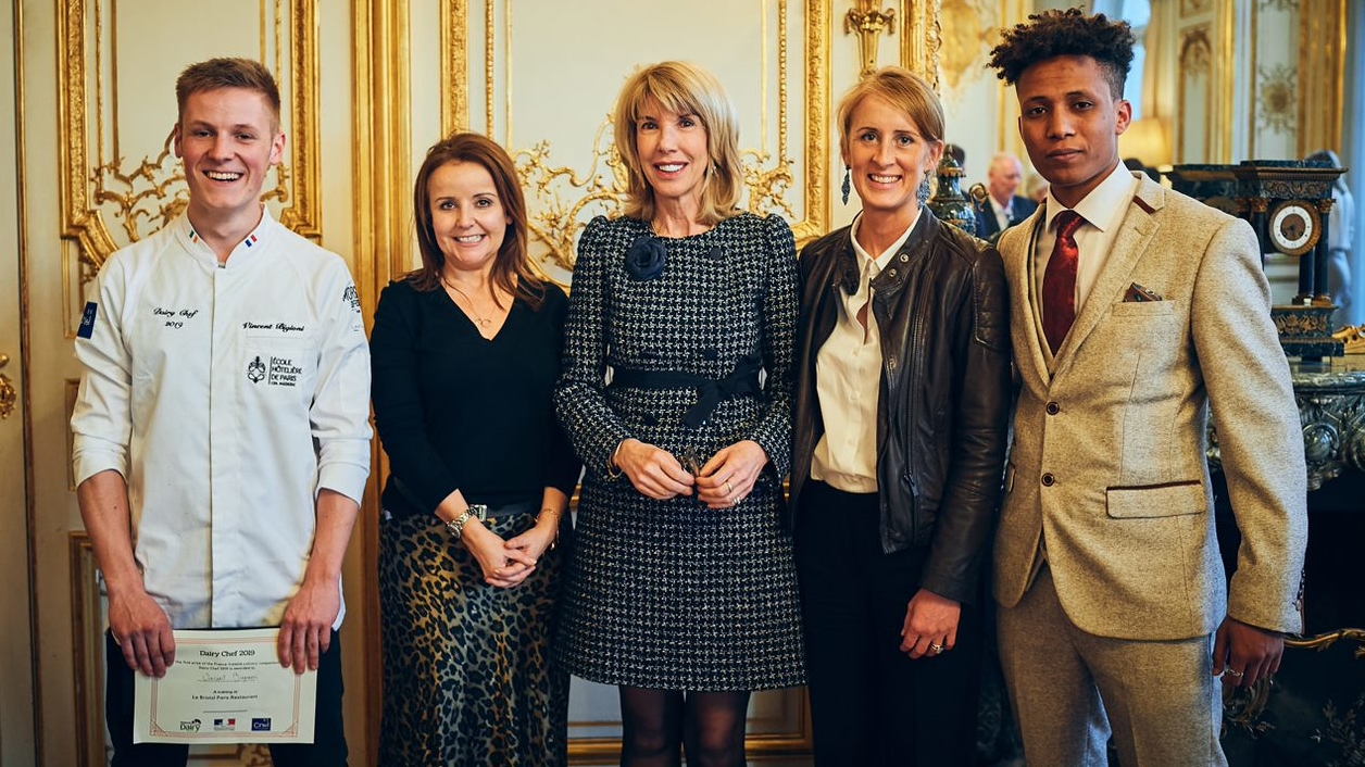 De gauche à droite : Vincent Bigioni (Institut Paul Bocuse), Cathy Curran (NDC), Patricia O'Brien (Ambassadrice d’Irlande en France), Caroline Le Poultier (Cniel) et Danay Berhane (Cork Institute of Technology)