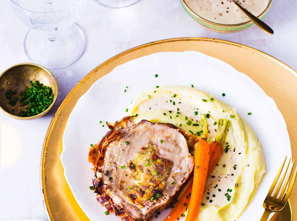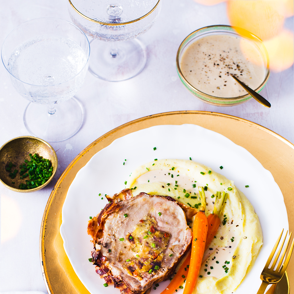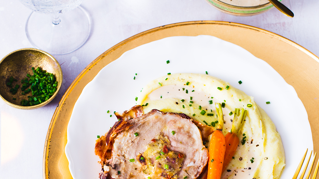 Rôti au lait farci aux marrons et fruits secs