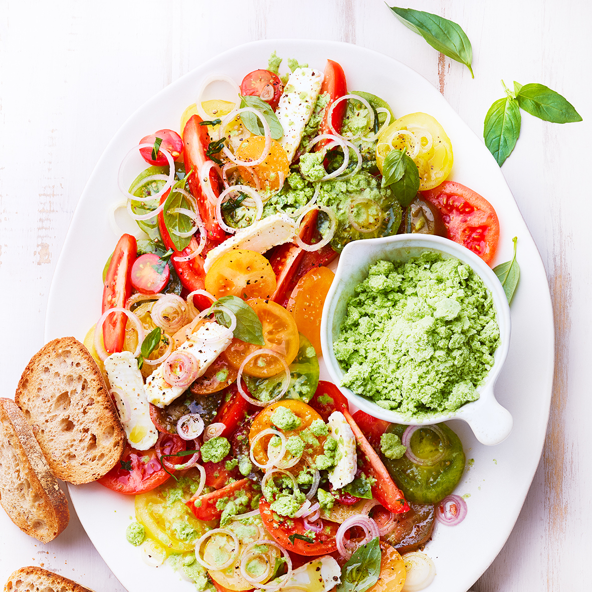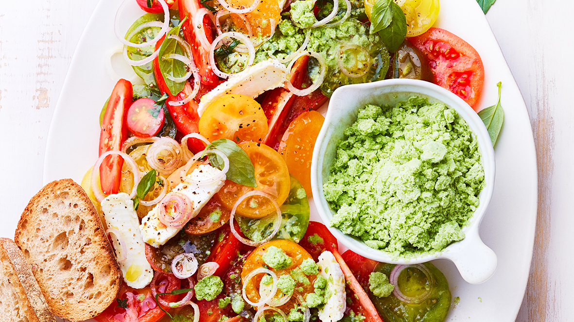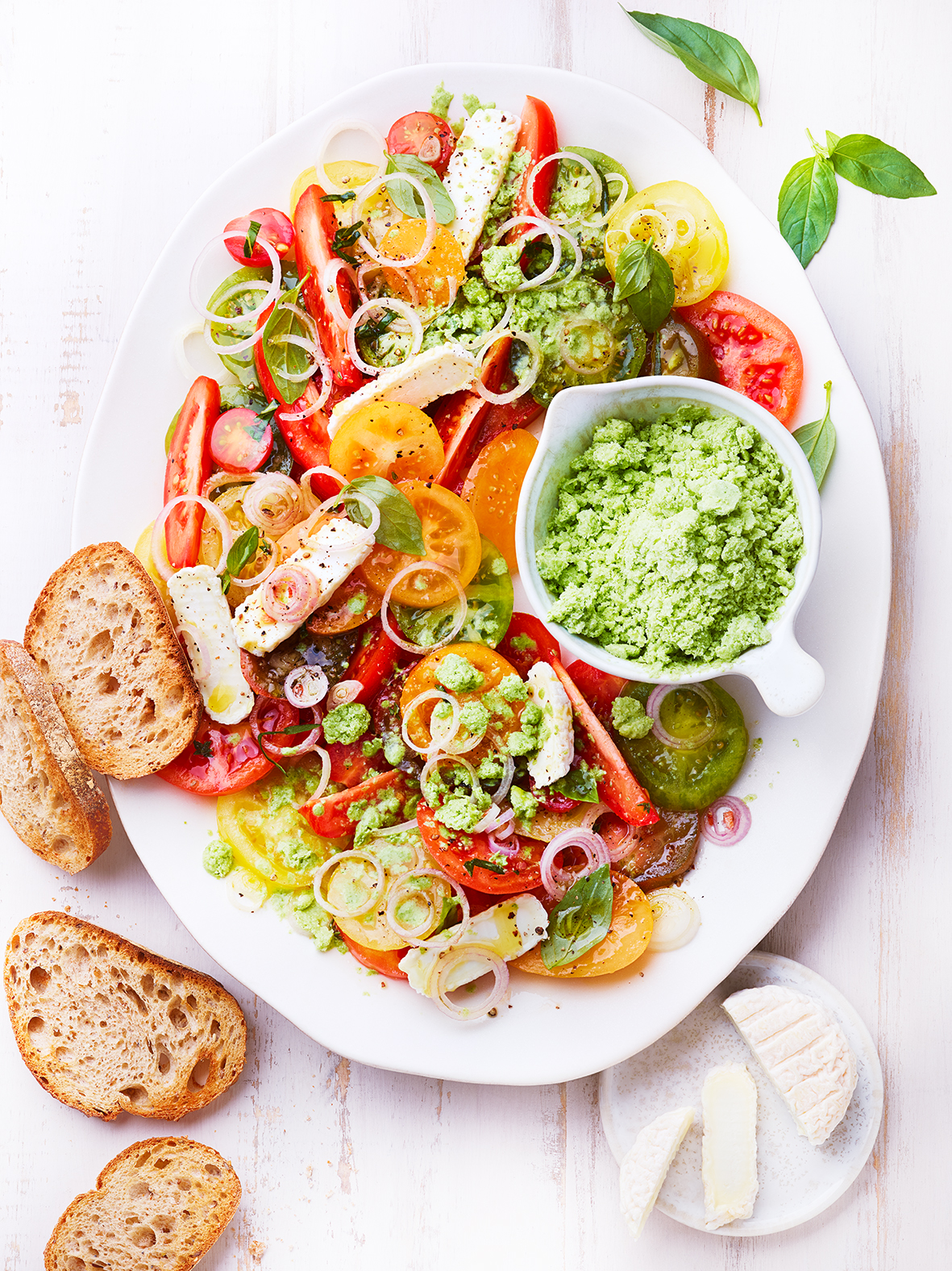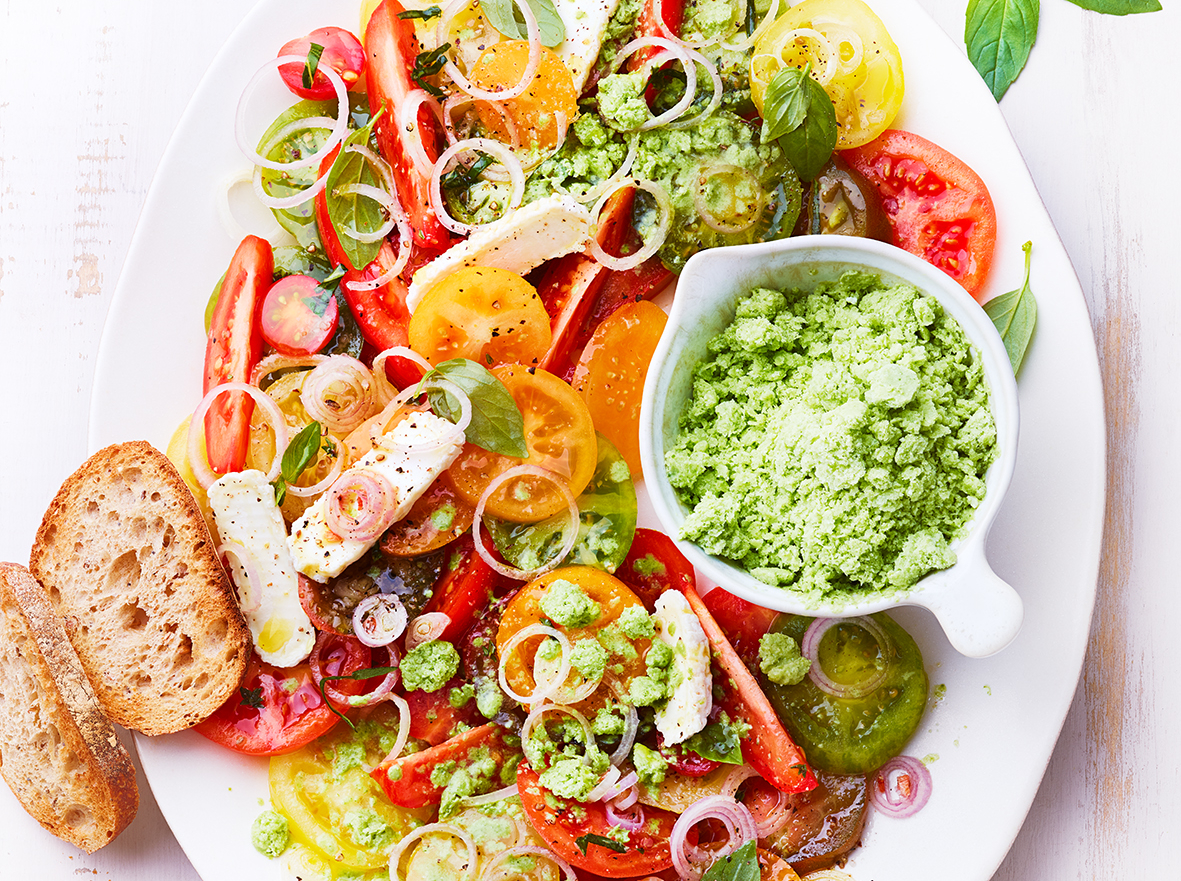 Salade de tomates et son granité chèvre-basilic