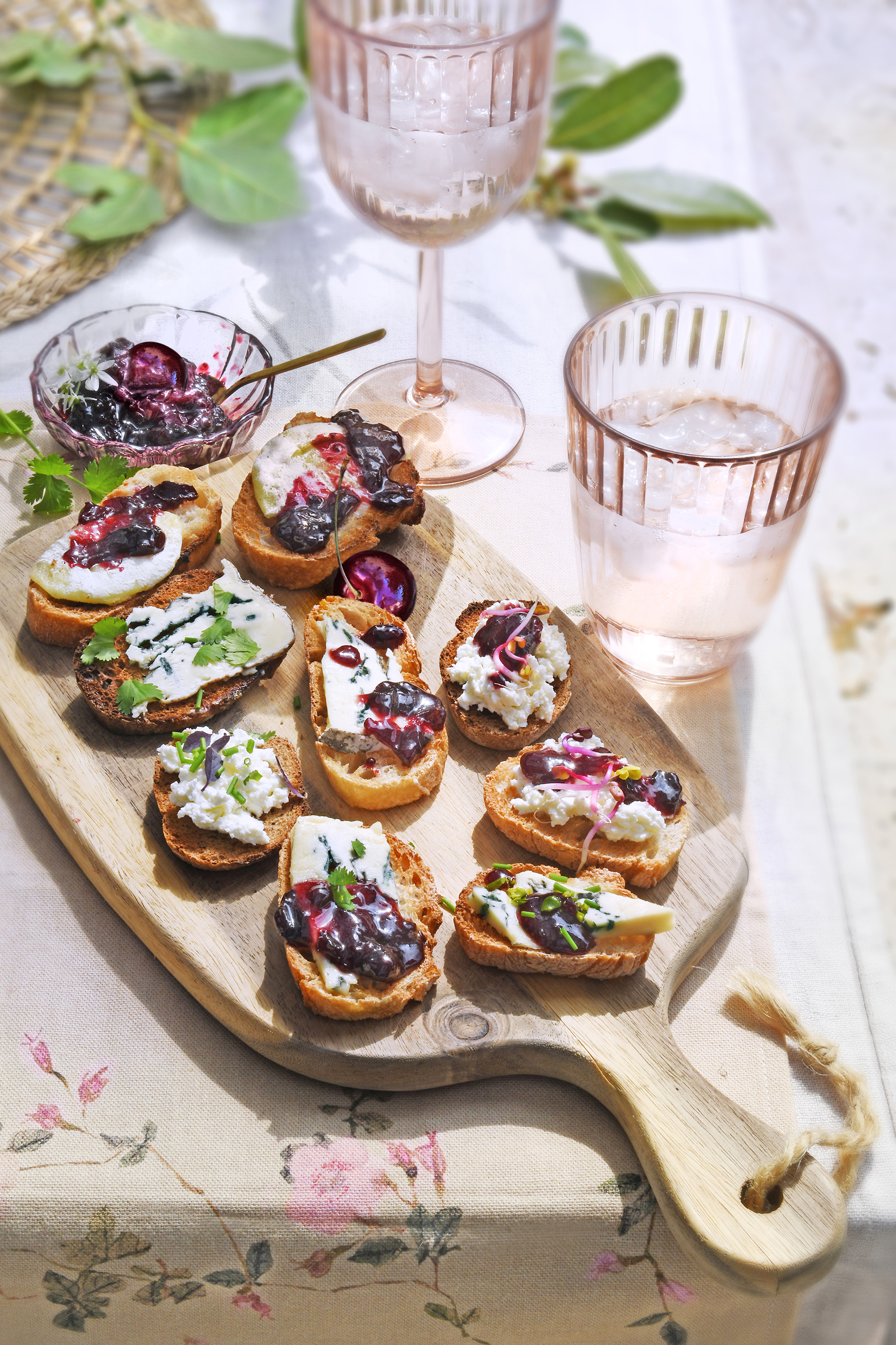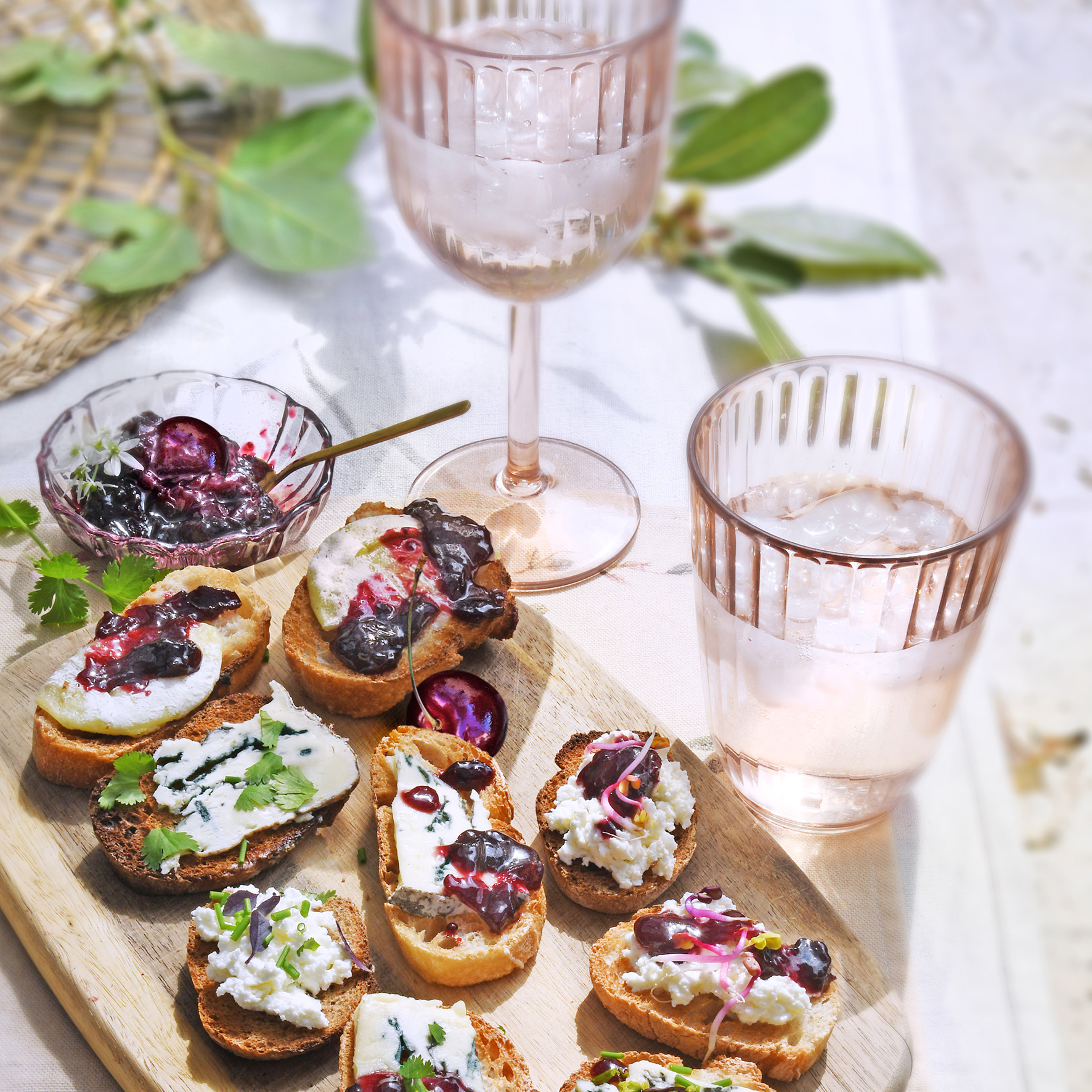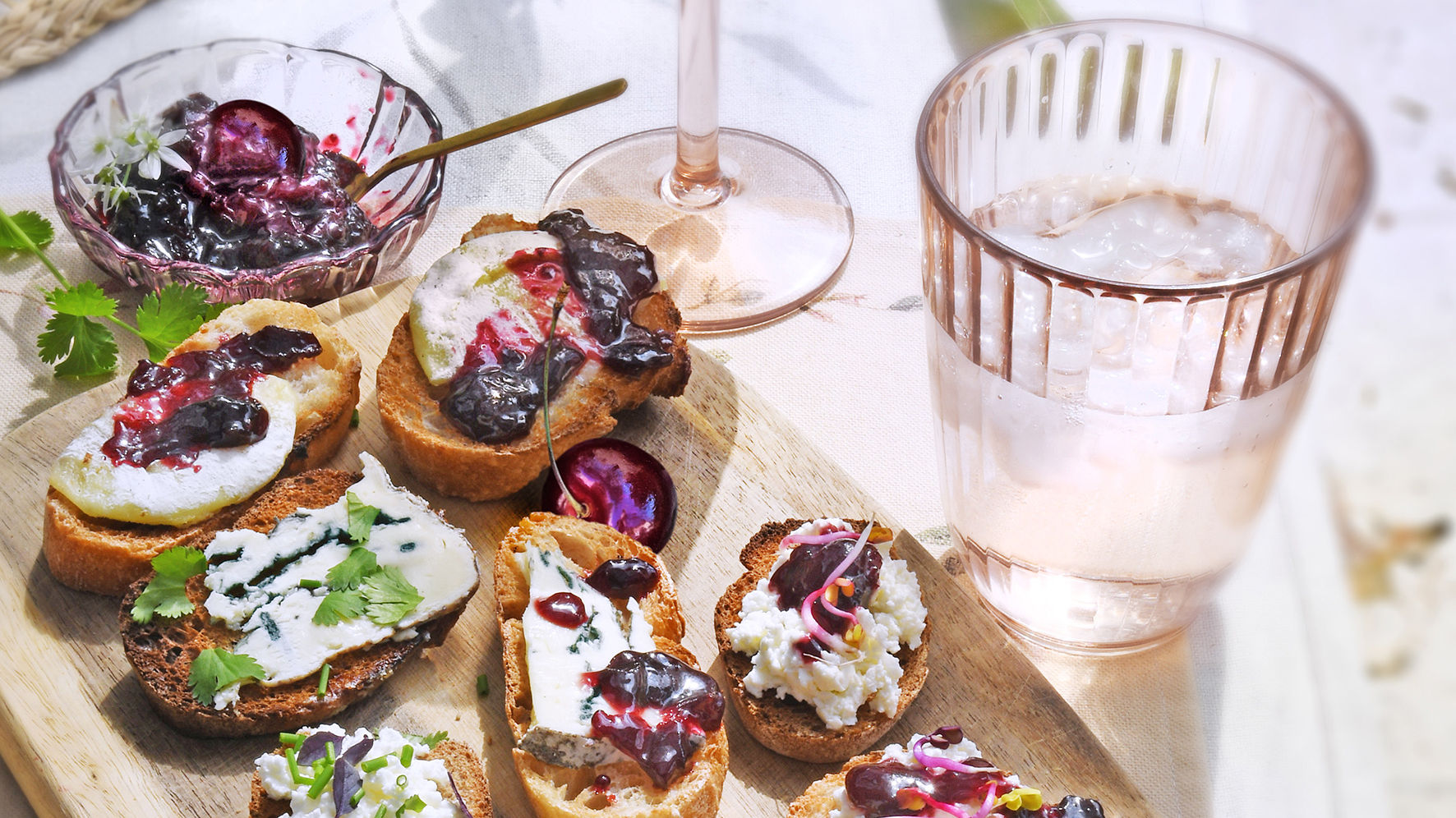 Tartines fromagères et compotée de cerises