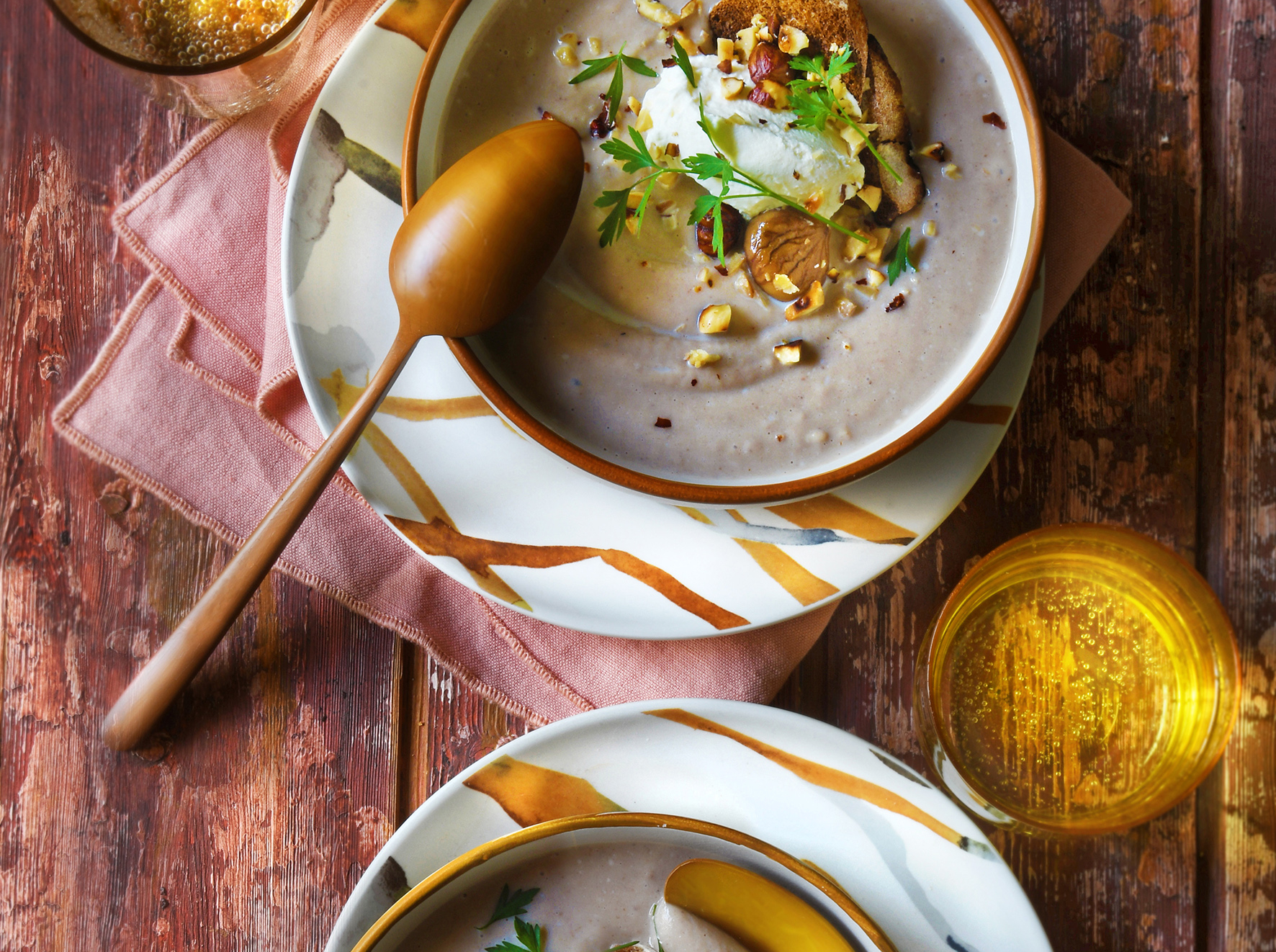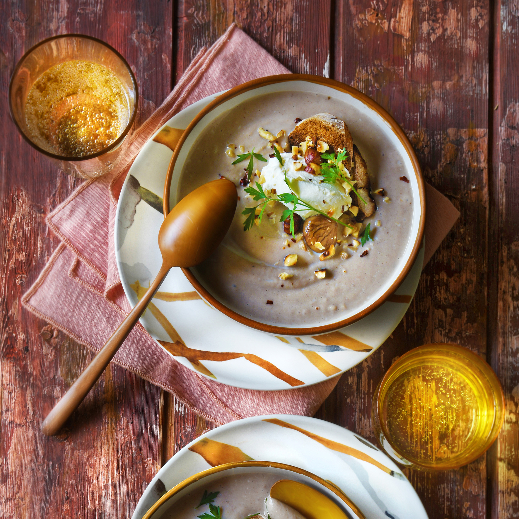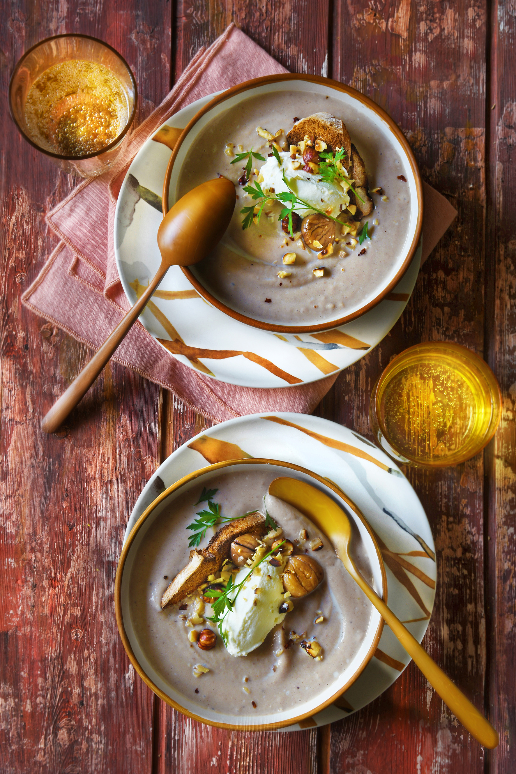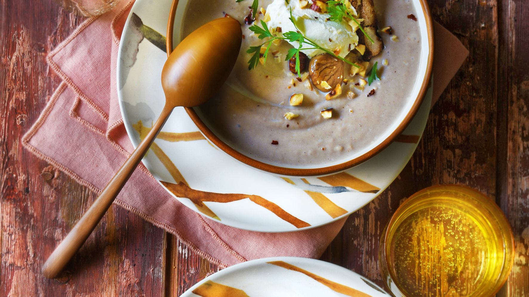 Velouté de châtaignes et quenelle de chantilly à la noisette